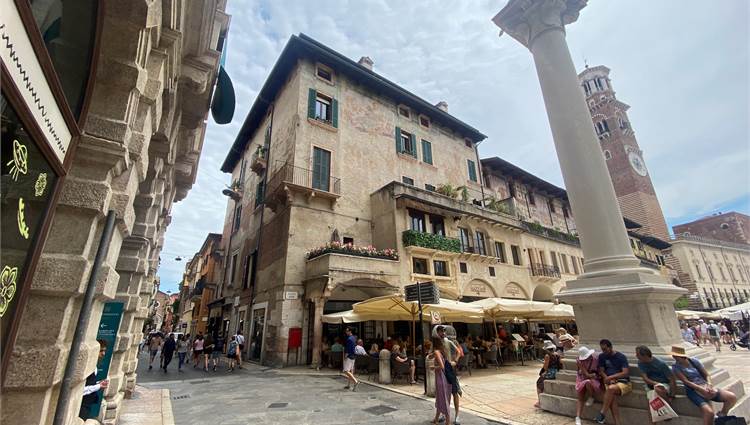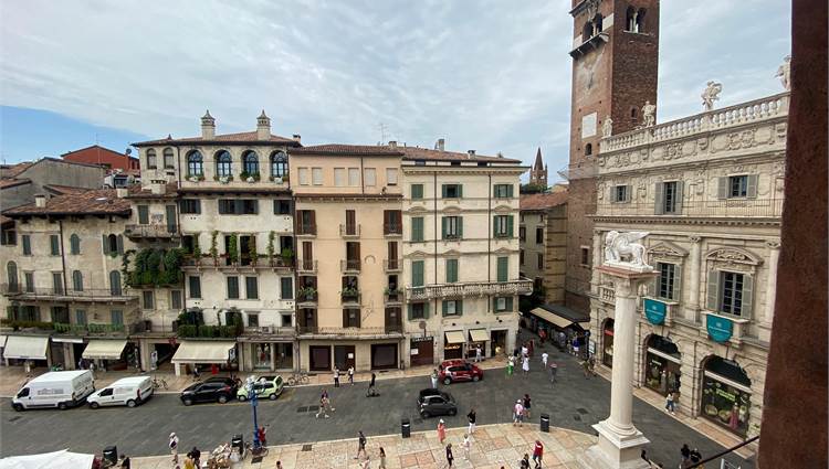 PALAZZO MAZZANTI affittasi splendido e prestigioso appartamento, elegantemente arredato con affaccio diretto sulla famosa Piazza delle Erbe. L'immobile ha un elegante ingresso, un grande salone affrescato con affaccio sulla piazza, salotto con camino, cucina semi abitabile, ripostiglio, matrimoniale, singola e due bellissimi bagni in marmo. E' dotato di ascensore e di impianto di raffrescamento. Solo referenziati. Cl.En. D Ipe 102,10. €. 2.200,00